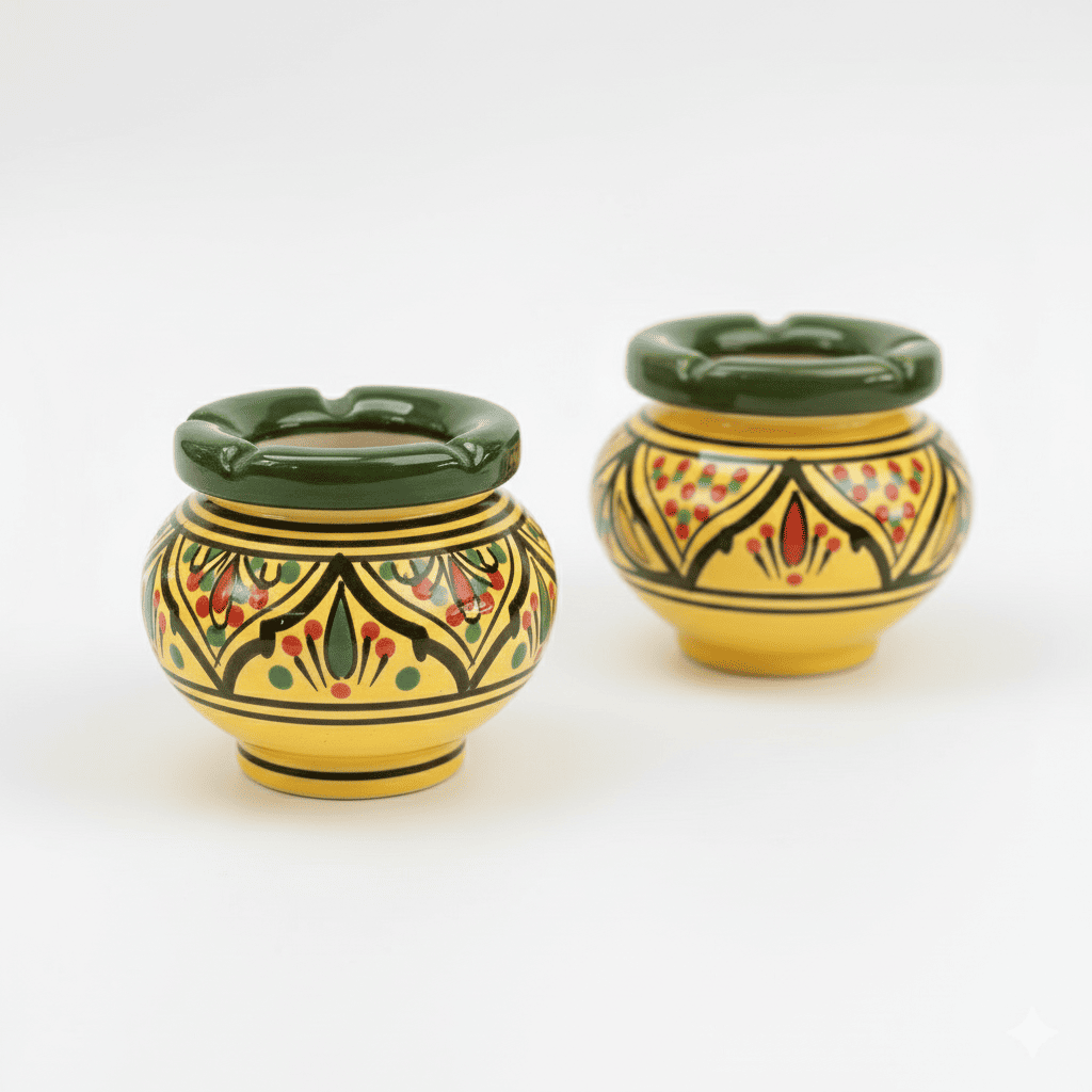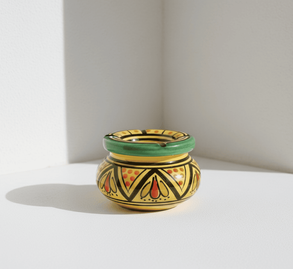 Cenicero de Cerámica Marroquí Amarillo – Hecho a Mano en Fes y Safi
