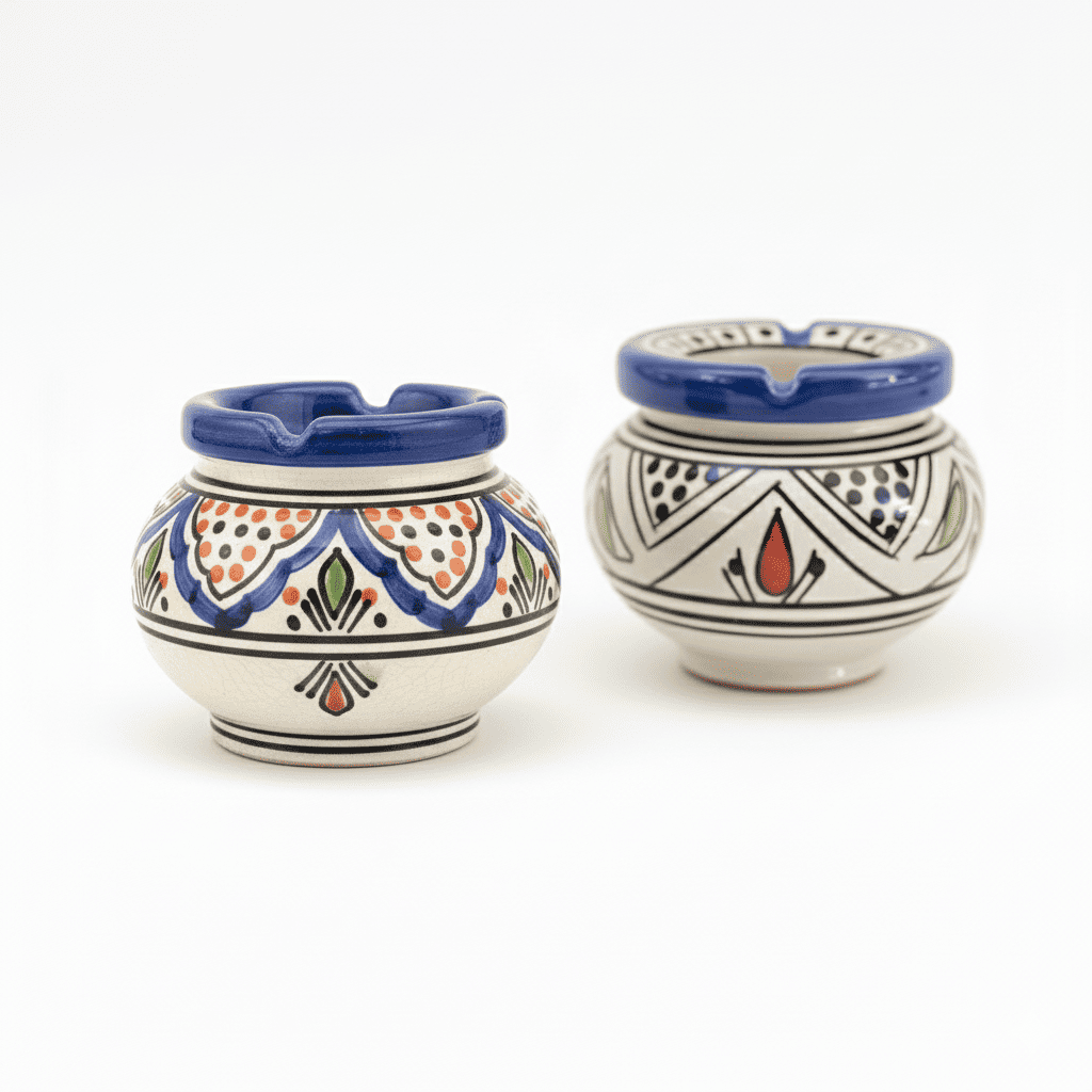 Cenicero de Cerámica Azul Hecho a Mano – Artesanía Marroquí de Fes y Safi