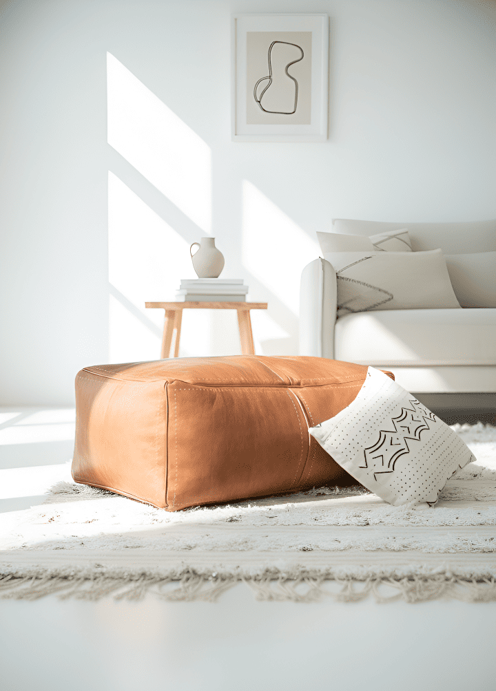 Puf Marroquí de Cuero Genuino Cuadrado – Artesanía Exclusiva
